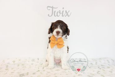 Amalie Winter (Winnie) and La Maison Aramis welcomed 6 gorgeous puppies on the 28th of October. 4 girls and 2 boys in chocolate parti and chocolate abstract. These puppies will be mini to small medium fully grown. We expect them to be between 10-12kg.
